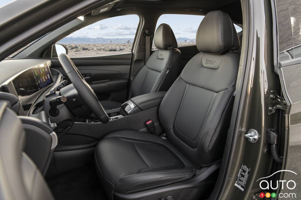 L'habitacle du Tucson XRT bénéficie de la mise à jour apportée à toute la gamme pour 2025. L'élément central de cette modernisation est le nouvel écran panoramique incurvé qui regroupe deux écrans de 12,3 pouces : l'un pour le tableau de bord numérique, l'autre pour le système d'infodivertissement.
