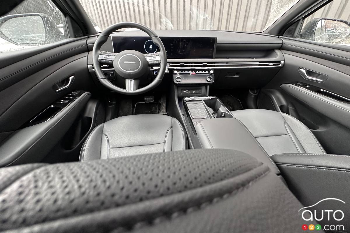 L'habitacle du Tucson XRT bénéficie de la mise à jour apportée à toute la gamme pour 2025. L'élément central de cette modernisation est le nouvel écran panoramique incurvé qui regroupe deux écrans de 12,3 pouces : l'un pour le tableau de bord numérique, l'autre pour le système d'infodivertissement.