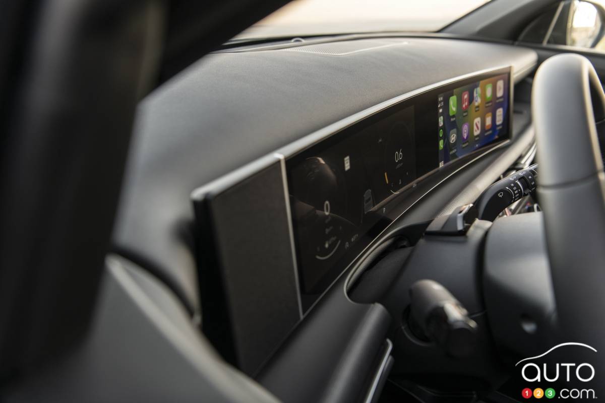 Le système d'infodivertissement est compatible de série avec Apple CarPlay et Android Auto sans fil. La présence d'un chargeur de téléphone sans fil dans la console centrale est également un atout.