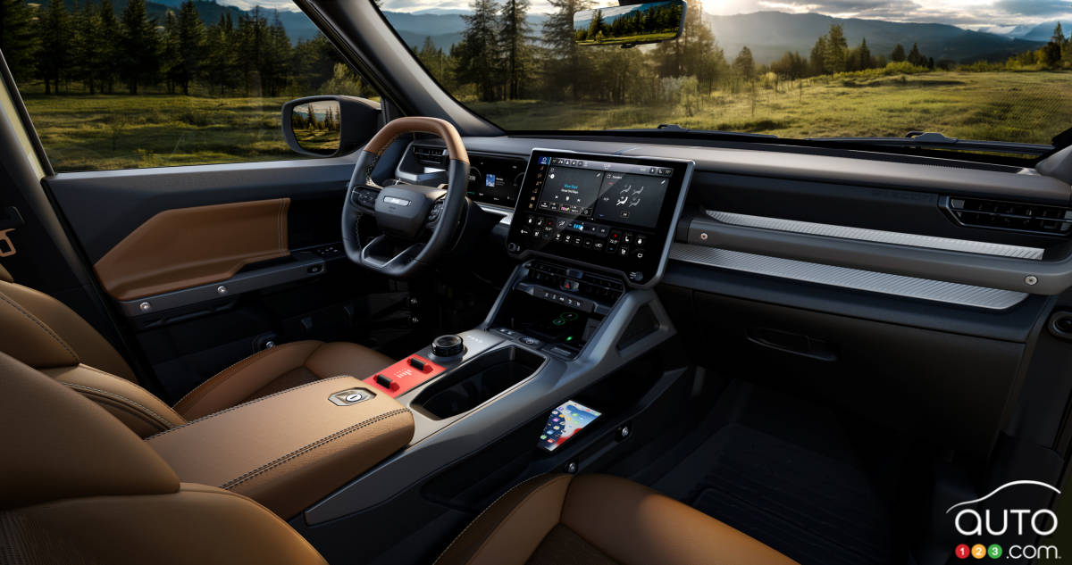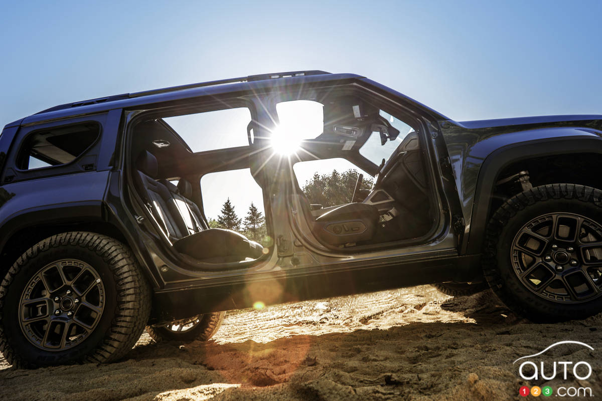 D’emblée, mentionnons que le Jeep Recon est bâti sur l’architecture STLA-Large développée par Stellantis. Sa motorisation électrique développe 650 chevaux et 620 lb-pi de couple. Cette puissance lui permet d’atteindre les 96 km/h depuis l’arrêt en seulement 3,6 secondes.