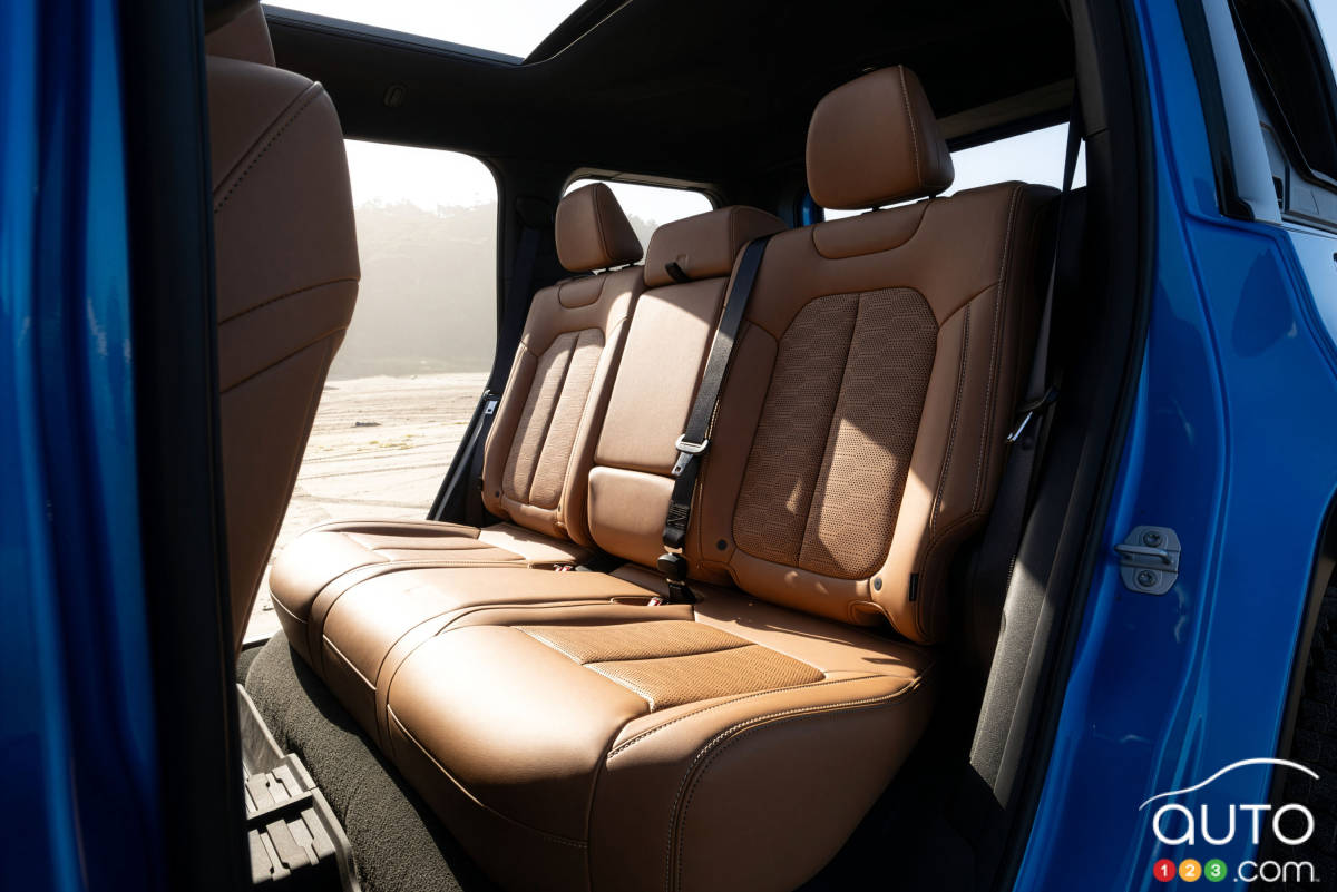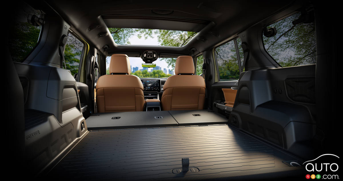 D’après les données fournies par le constructeur, le Recon peut parcourir jusqu’à 400 kilomètres lorsque sa batterie de 100,5 kWh est pleinement chargée. L’autonomie de la version Moab, qui arrivera en premier chez les concessionnaires, est de 370 km.