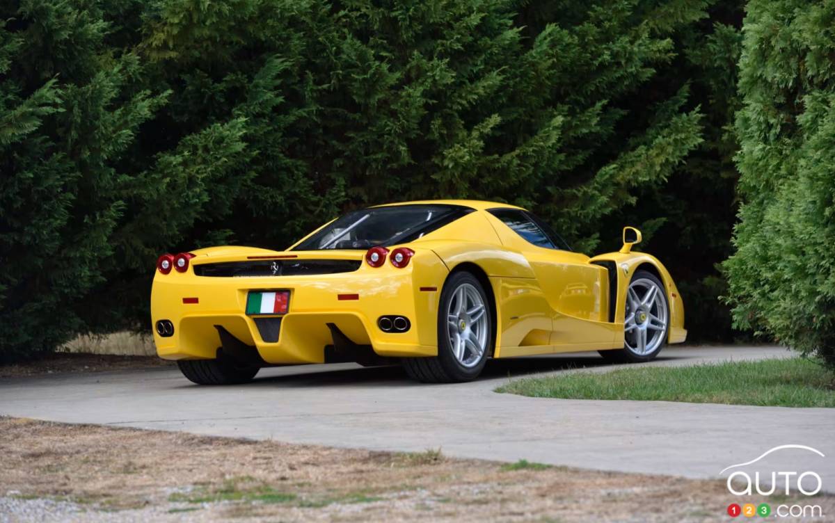 Mentionnons qu’une seconde Ferrari Enzo s’est également glissée parmi le palmarès des voitures les plus chères de l’encan. Peinte en rouge Rosso, elle a parcouru un total de 3746 milles (6028 km). La vente s’est conclue pour 11 110 000 $ US (15 457 300 $ CA).